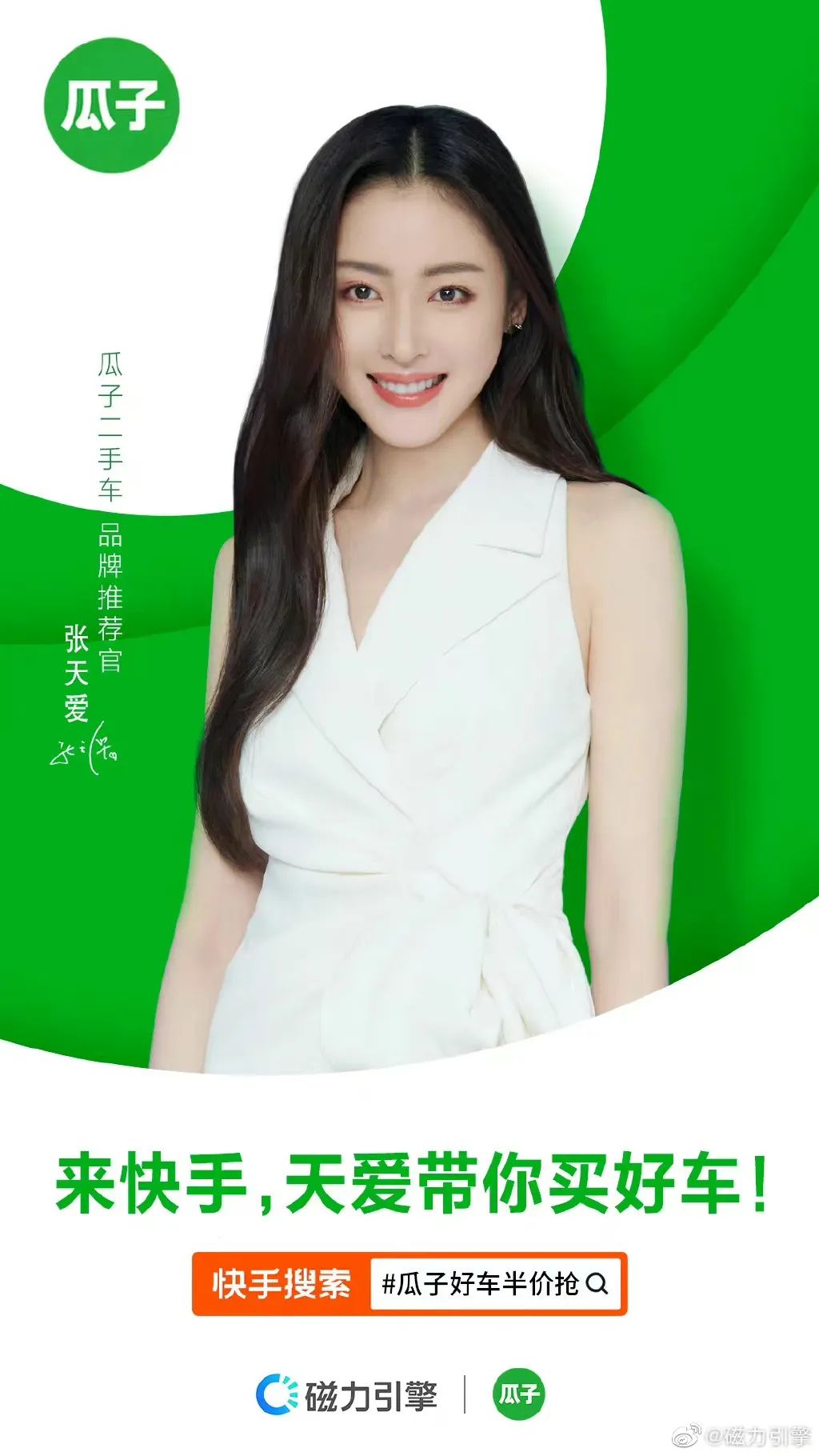 从消费品牌到消费内容传播学家麦克卢汉说,媒介即讯息。短视频时代不仅塑造了人们感知世界的方式,也重塑了新一代消费者的决策路径。与其说他们在购买商品,不如说他们更愿意为优质体验、新奇有趣的内容买单。以此观照瓜子二手车“好车节”活动,可以发现内容仍然是快手构建整个体系的中心点。这不仅是快手平台汽车内容生态优势作用的结果,也极其符合当下用户的消费习惯。其中的传播逻辑有着尤为明显的两条内容主线:一是内容的“软化”呈现。这一点在张天爱演绎的魔性定制TVC中十分明显,当有趣、好玩的内容调性被前置,营销信息自然被软化。植入之所没有违和感,是因为TVC将营销信息与内容、场景实现有效连接。例如,当张天爱化身汽车检测员的身份拿着检测报告,说出瓜子二手车“严选好车”、“专业靠谱”的营销信息时就毫无违和感。