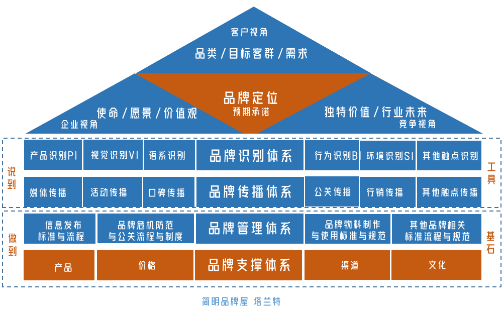 首先屋顶肯定是品牌定位了,这是顶层设计。