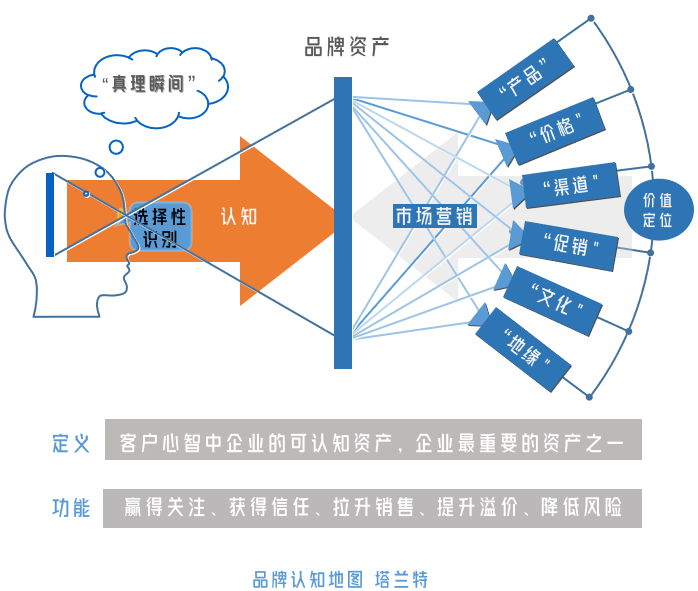 左侧是客户的认知,右侧是企业的产品、营销和文化。