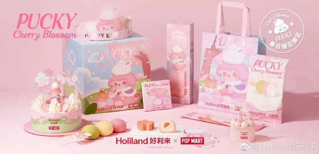 在去年,两次联名泡泡玛特,相继推出[Pucky 甜甜蛋糕]和[泡泡芝士盲盒蛋糕]系列,盲盒在年轻群体中本来就自带流量属性,结合盲盒以及隐藏款的玩法,增加了蛋糕购买本身的趣味性。