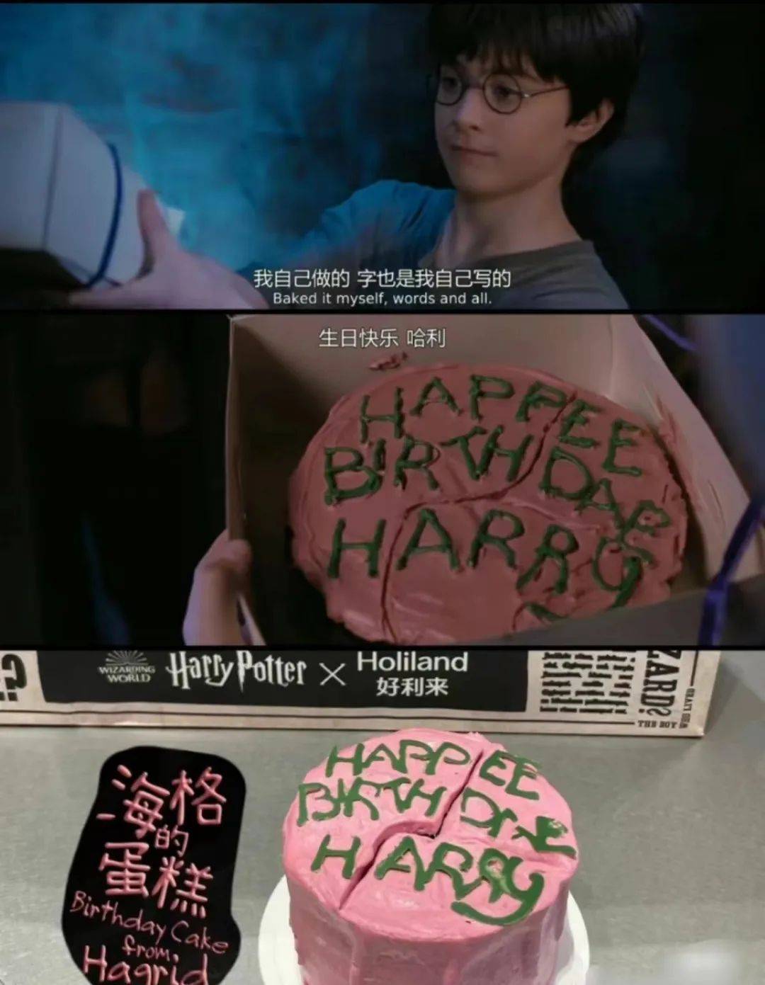 此外,对于一些经典 IP 的合作联名,好利来牢牢抓住了不同圈层人群的情怀属性。例如在最近一次和哈利波特的联名中,特地在经典 IP哈利波特42岁生日这天,推出了两款与《哈利·波特》联名的产品,产品的设计细节上也做足了功夫,电影中各种元素:站台车票、金色飞贼、海德薇、巧克力蛙以及被海格坐裂的蛋糕这些经典桥段也被完美复刻在了蛋糕上,部分产品亲民的价格➕这样深度的联名还原故事性,很难让“哈迷”不为自己的情怀买一次单。