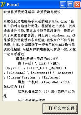 procedure TForm1.Button1Click(Sender: TObject);begin if OPenDialog1.Execute then begin RichEdit1.Lines.LoadFromFile(OpenDialog1.FileName); end;end;复制代码带滚动控件