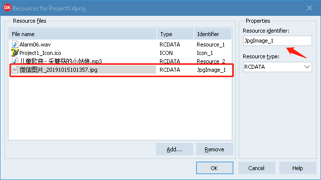 procedure TForm1.Button2Click(Sender: TObject);varrs: TResourceStream;jp: TJPEGImage;beginrs := TResourceStream.Create(HInstance, 'JpgImage_1', RT_RCDATA);tryjp := TJPEGImage.Create;tryjp.LoadFromStream(rs);Image1.Picture.Graphic := jp;finallyjp.Free;end;finallyrs.Free;end;