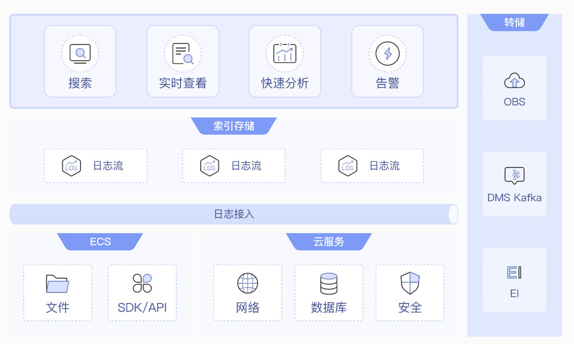 在海量数据的时代,让宝贵的原始日志数据躺在磁盘里日渐沉寂,无法在云时代“一展宏图”,完全是埋没了日志数据的价值。而使用华为云日志服务就可以从项目初始便赋予日志数据搜索、分析和探索能力,让日志数据活起来、变有用。华为云日志服务提供日志采集、秒级搜索、海量存储、结构化处理、转储和可视化图表等各项能力,可满足应用运维、可视化分析、等保合规等各类应用场景。