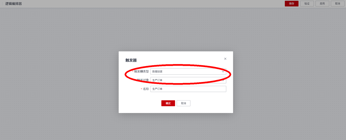 a.数据创建:在所选的触发对象模型的数据实例创建时,自动触发逻辑流的执行;